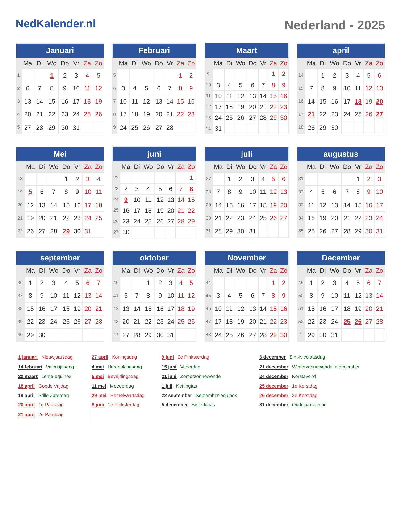 Nederlandse Kalender 2025