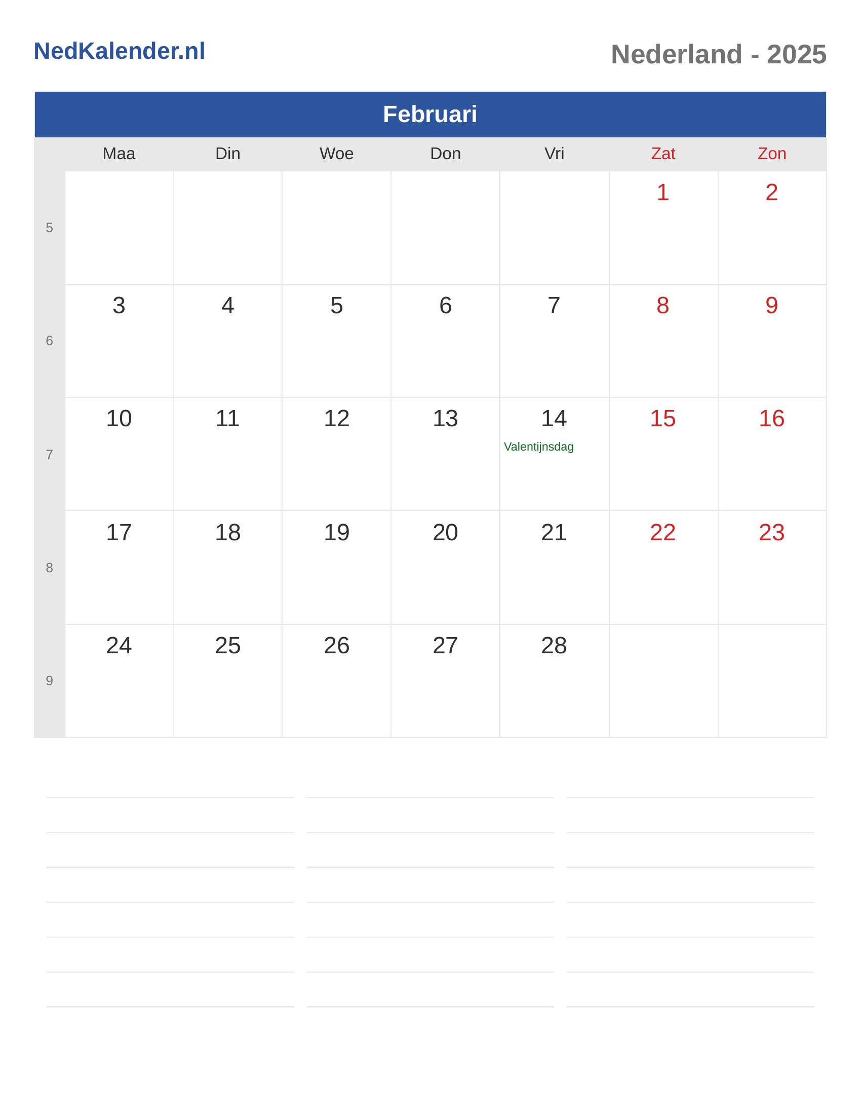 Nederland Kalender 2025 - Februari