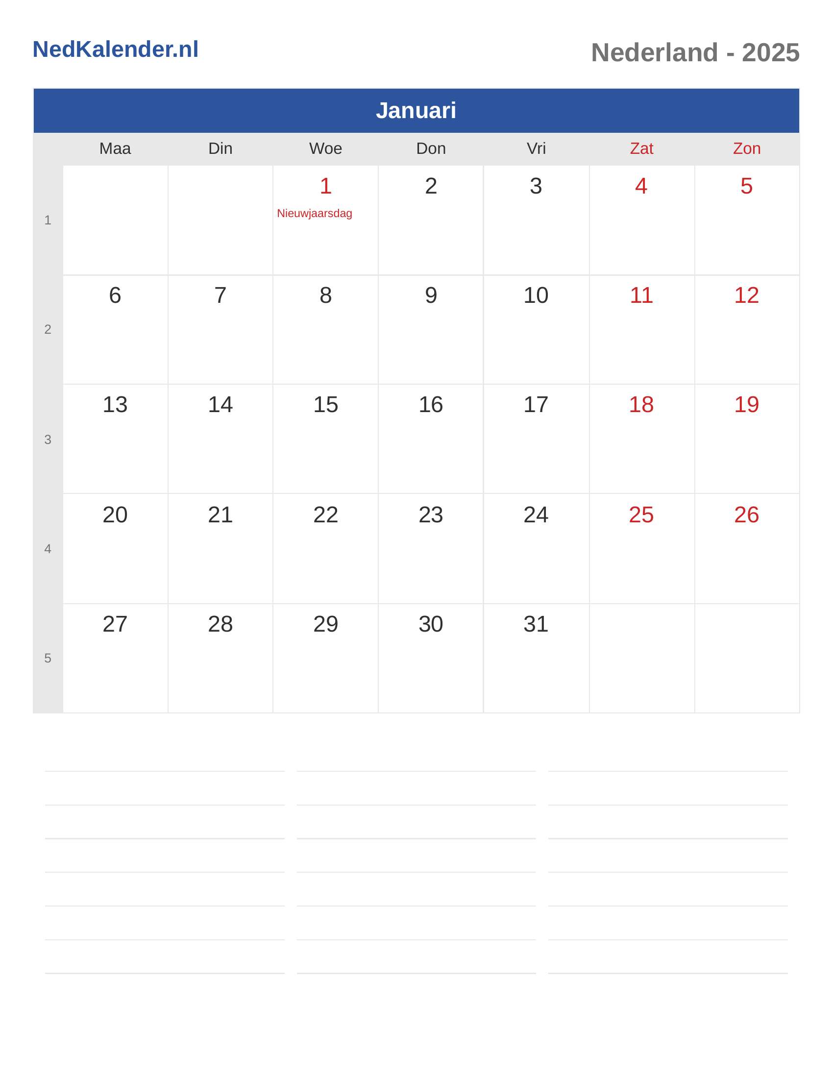 Nederland Kalender 2025 - Januari
