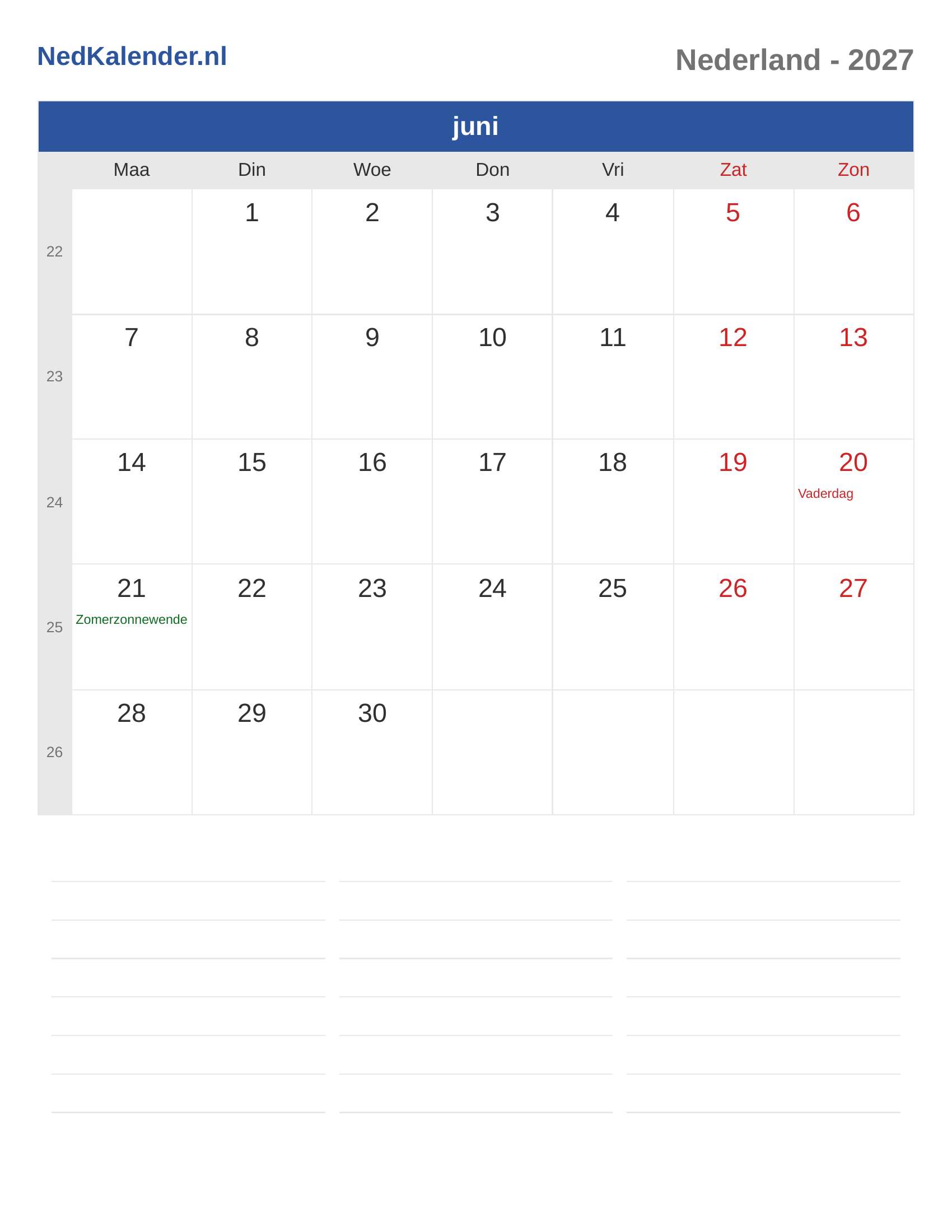 Nederland Kalender 2027 - juni