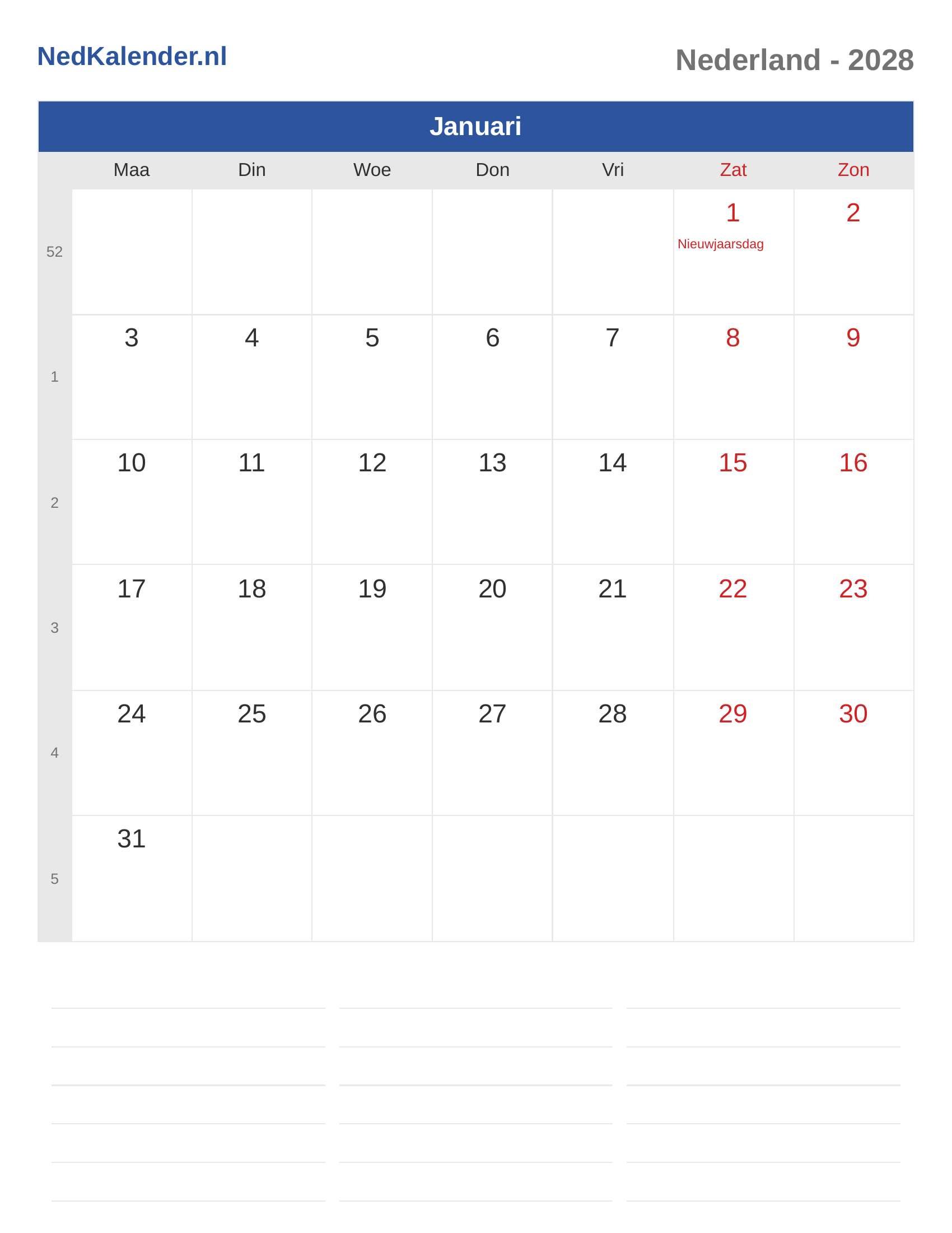 Nederland Kalender 2028 - Januari