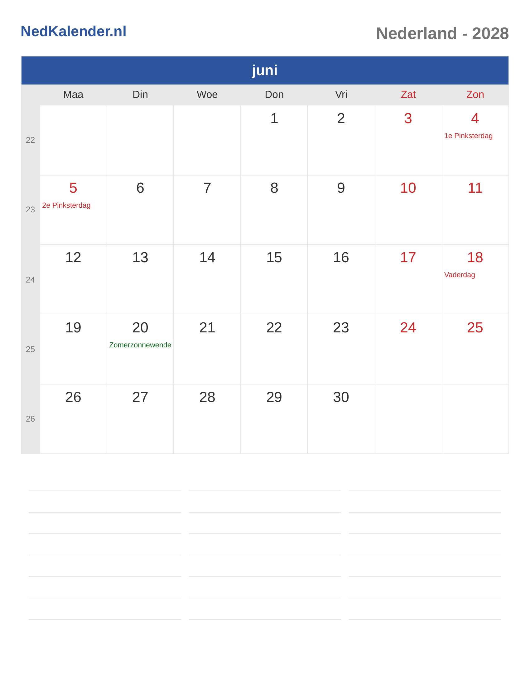 Nederland Kalender 2028 - juni
