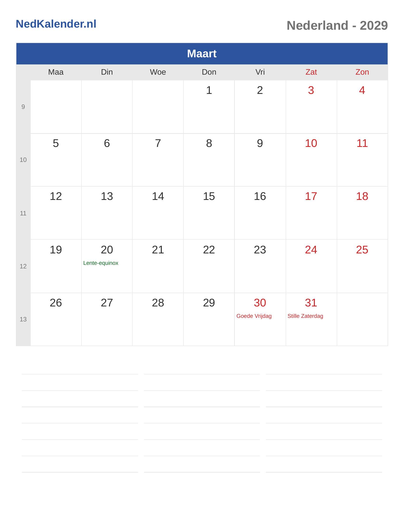 Nederland Kalender 2029 - Maart