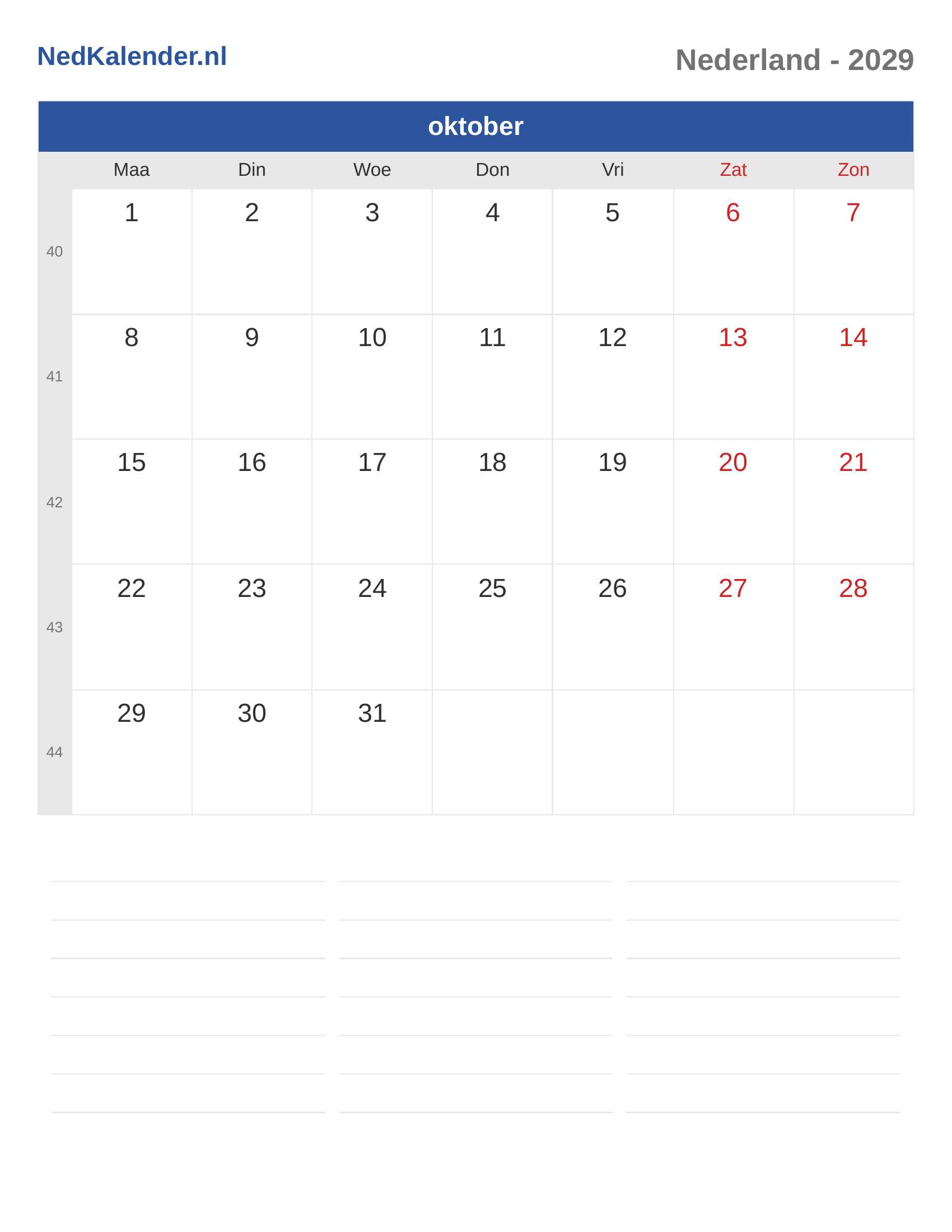 Nederland Kalender 2029 - oktober